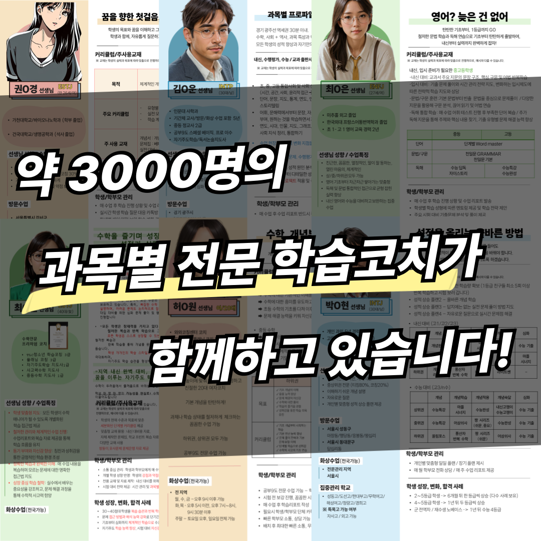 비슷한 금액이라도 어떤 강사는 아이에게 맞춤형 피드백을 주고, 어떤 강사는 단순히 문제풀이만 진행한다. 비용을 지불하는 것이 아니라, 아이의 학습 태도와 미래를 바꿀 수 있는 기회를 선택한다고 생각하는 것이 더 정확하다.